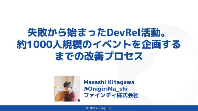 © 2023 Findy Inc. 失敗から始まったDevRel活動。 約1000人規模のイベントを企画する までの改善プロセス Masashi Kitagawa @OnigiriMa_shi