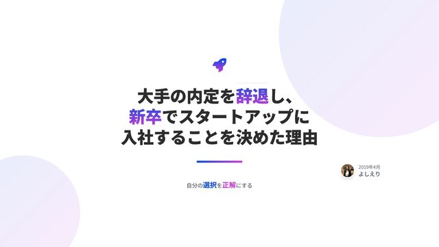 大手の内定を辞退し、 新卒でスタートアップに 入社することを決めた理由 自分の選択を正解にする 2019年4月 よしえり