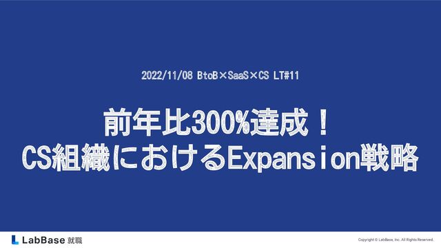 Copyright © LabBase, Inc. All Rights Reserved. 前年比300%達成! CS組織におけるExpansion戦略 2022/11/08
