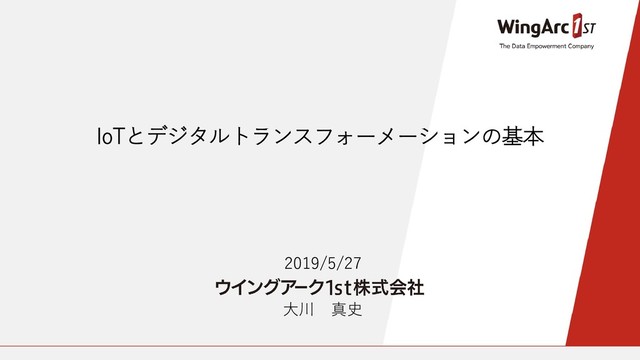 @masashiokawa masashi.okawa1 大川真史(おおかわまさし) ウイングアーク1st(株)Connected Industries エヴァンジェリスト 【専門】デジタル化による社会・産業・企業構造転換に関する研究・情報発信 【講演】経済産業省、日本経団連、経済同友会、日本商工会議所、各地商工会議所、自治体、学会、企業 【出版】IoTまるわかり、ビジュアル解説IoT入門(ともに三菱総合研究所編、日本経済新聞出版社) 【寄稿】読売新聞、日経新聞、朝日新聞、日刊工業新聞、週刊東洋経済、日経コンピュータ、日経ビッグデータ、 プレジデント(特集監修)、読売新聞(帝京大学入試問題)、日経 Biz Gate、学会誌、専門誌 【社外活動/役職】 ⚫ 明治大学 サービス創新研究所:客員研究員 ⚫ 総務省:情報通信分野における国際的研究開発の未来洞察 有識者 ⚫ 東京商工会議所:スマートものづくり推進事業専門家WG 座長 ⚫ 栃木県:IoT等専門家派遣事業 専門家 ⚫ ロボット革命イニシアチブ協議会(RRI):中堅中小 AGメンバー ⚫ デジタルハリウッド大学大学院デジタルヘルスラボ 客員講師 ⚫ 主催コミュニティ:エンタープライズIoTLT/ヘルスケアIoTLT、 M5StackUG、同人ハードウェアミートアップ 【プロジェクト例】 ⚫ 民間向け:BtoBのサービス事業コンサル ⚫ 民間向け:BtoBデジタル新サービス開発 ⚫ 経産省:第4次産業革命クリエイティブ研究会 ⚫ 経産省:中堅・中小製造業IoT導入手法 ⚫ 経産省:2016年度ものづくり白書作成支援 ⚫ RRI:スマートものづくり応援ツール審査員 ⚫ 東商:スマートものづくり実践事例集 ⚫ 日商:中小企業活力増強のITサービス・レシピ