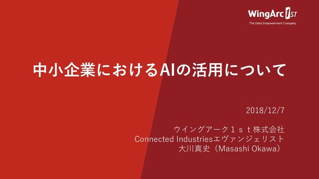 中小企業におけるAIの活用について 2018/12/7 ウイングアーク1st株式会社 Connected Industriesエヴァンジェリスト 大川真史(Masashi Okawa)