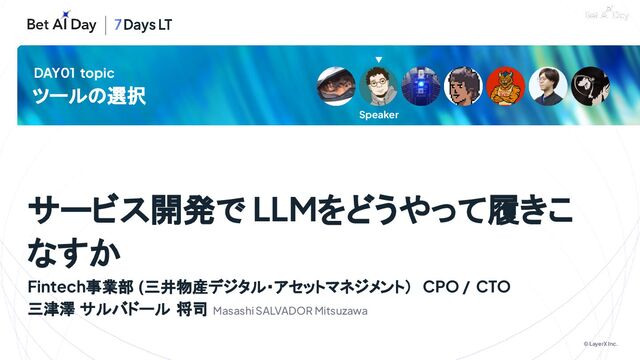LayerX Bet AI Day LT Day 1 ツールの選択でLTしたスライドです。