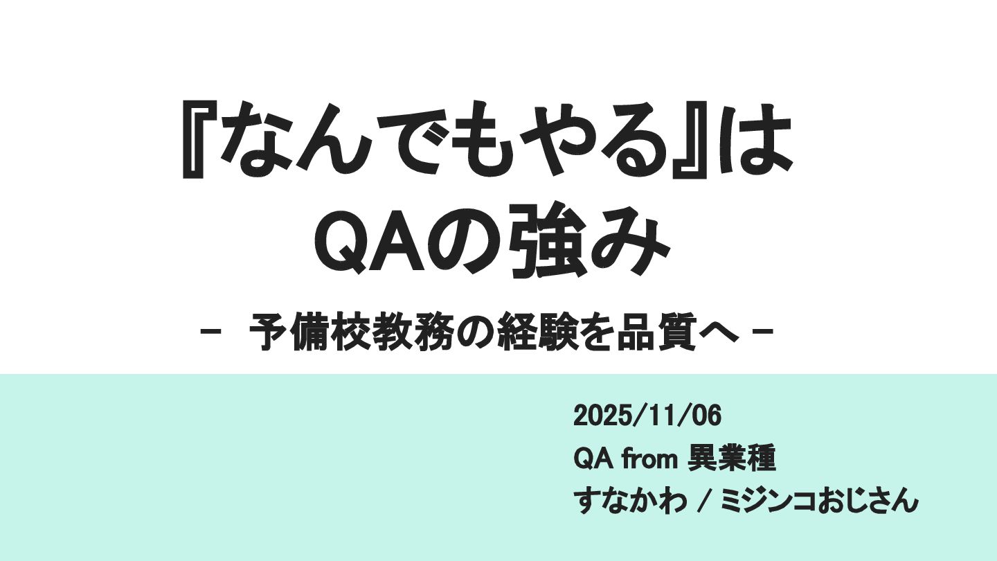 『なんでもやる』は QAの強み - 予備校教務の経験を品質へ - 2025/11/06