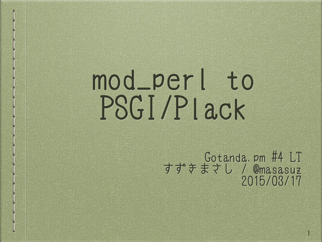 mod_perl to PSGI/Plack Gotanda.pm #4 LT すずきまさし / @masasuz 2015/03/17