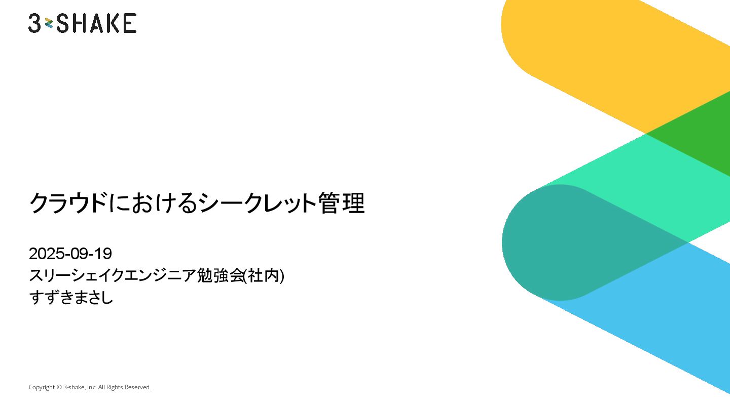クラウドにおけるシークレット管理 Copyright © 3-shake, Inc. All Rights Reserved. 2025-09-19 スリーシェイクエンジニア勉強会