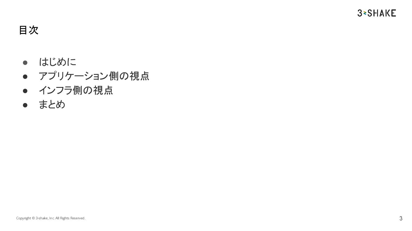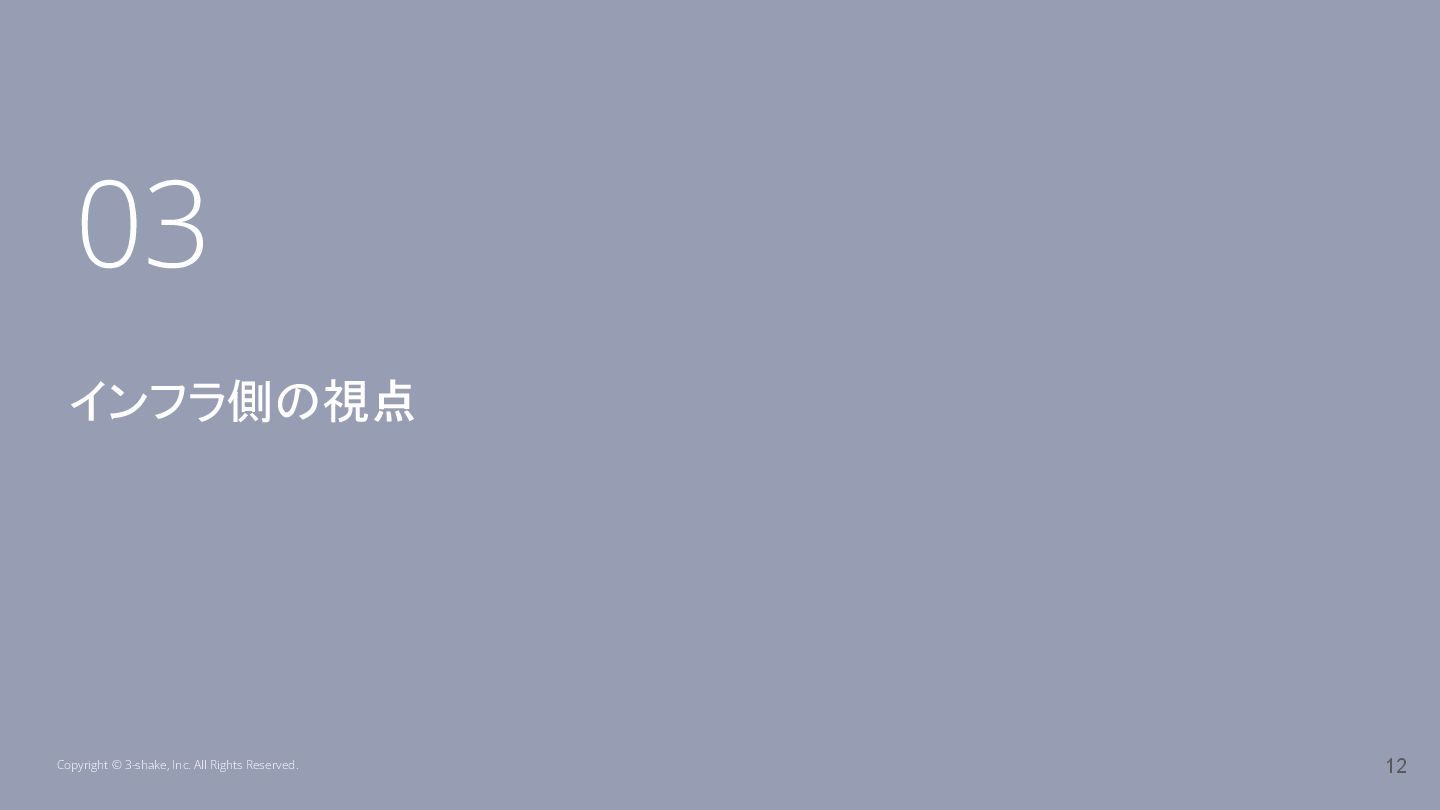 Copyright © 3-shake, Inc. All Rights Reserved. インフラ側の視点 03 12