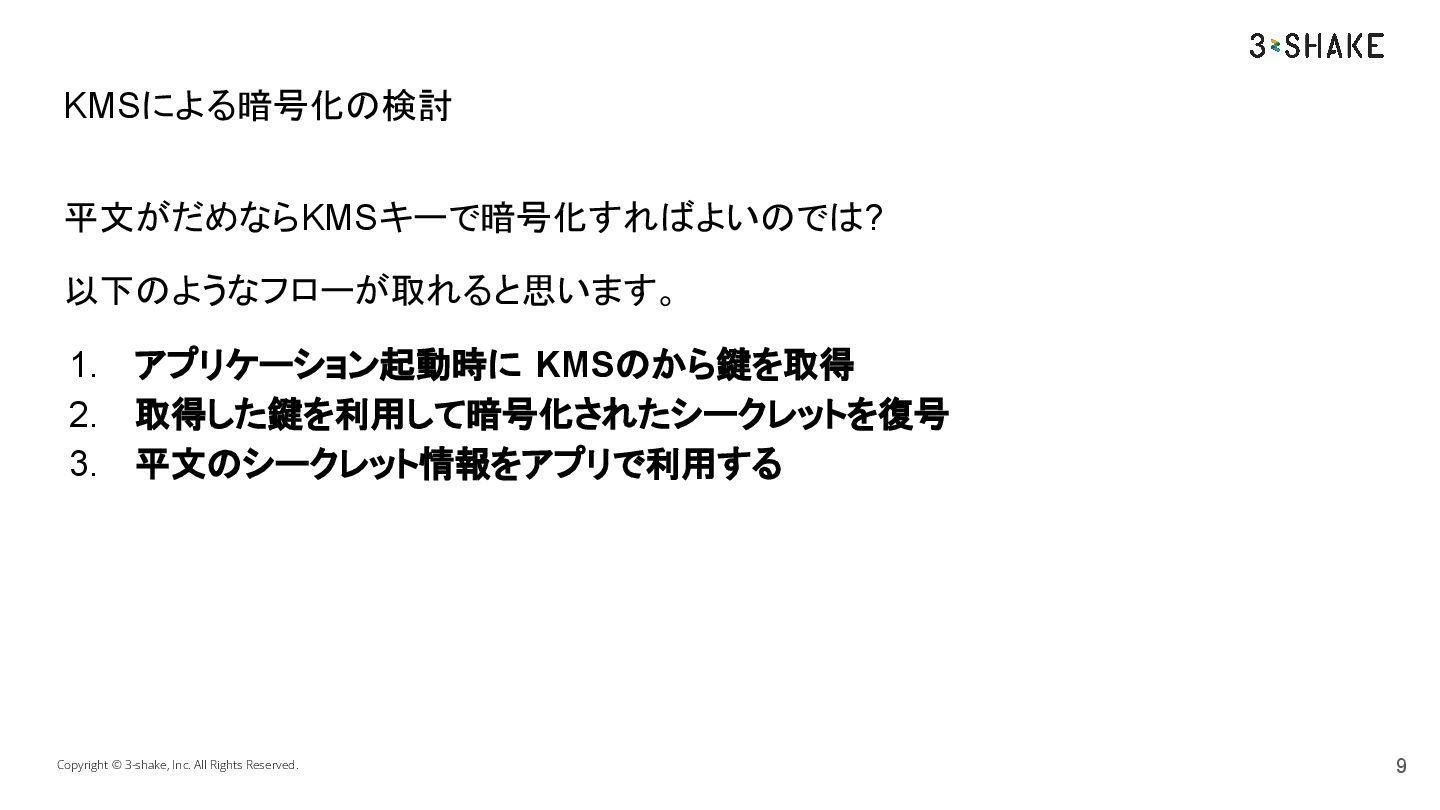 © 3-shake, Inc. All Rights Reserved. KMSによる暗号化の検討 9