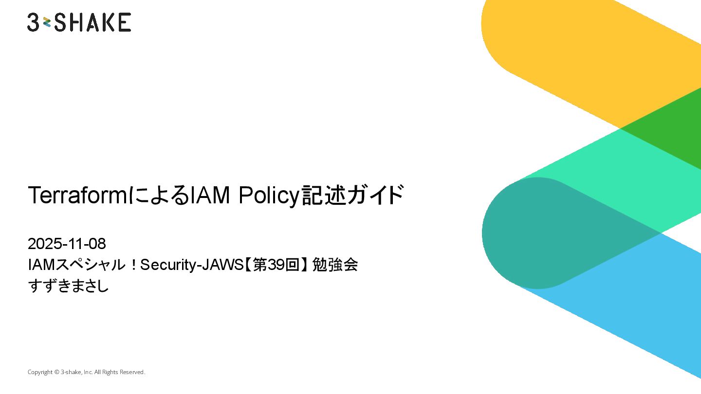 [[IAMスペシャル!]Security-JAWS【第39回】 勉強会 2025年11月08日(土) - connpass](https://s-jaws.connpass.com/event/366395/) の発表資料