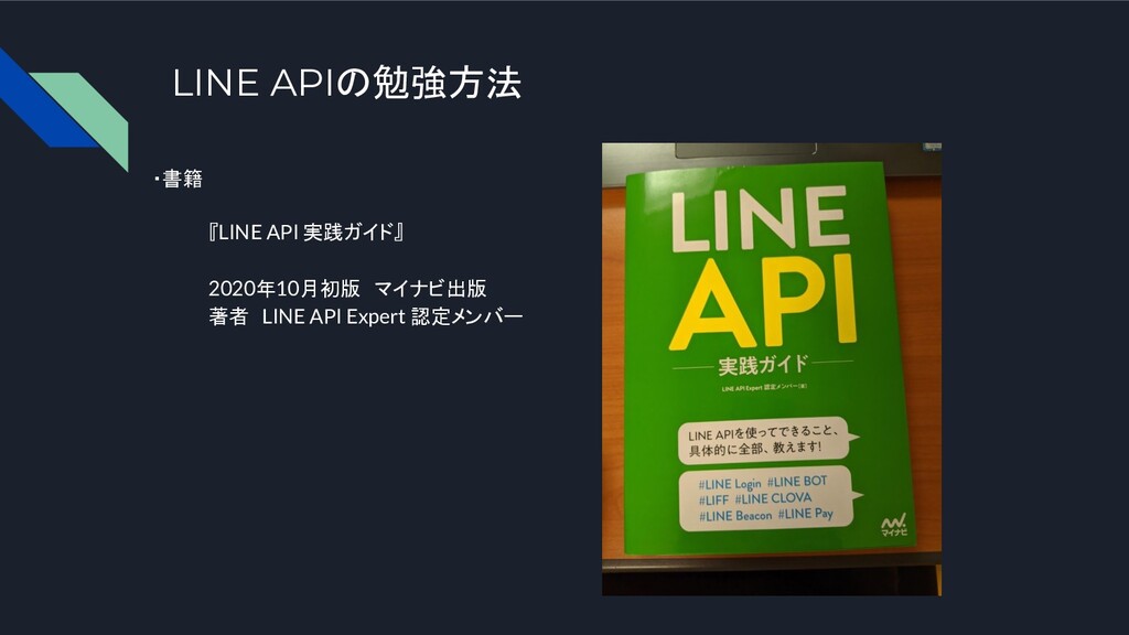 公式の管理画面( LINE Official Account Manager)について ➢ LINE APIでできること(初級編。 Bot, LIFF, ミニアプリ, etc...) ❖ Azure を選んだ理由 ➢ 足りない機能、将来的に欲しい機能 ➢ いろいろ検討して、 Azureを使おうと決めた ❖ Azureで開発してみてわかったこと ➢ 開発生産性, 管理の効率, 学習コスト, etc… ➢ LINEとの連携について ➢ LINE APIでできること(中級編) ❖ LINE API を効率よく学ぶ方法(おまけ)