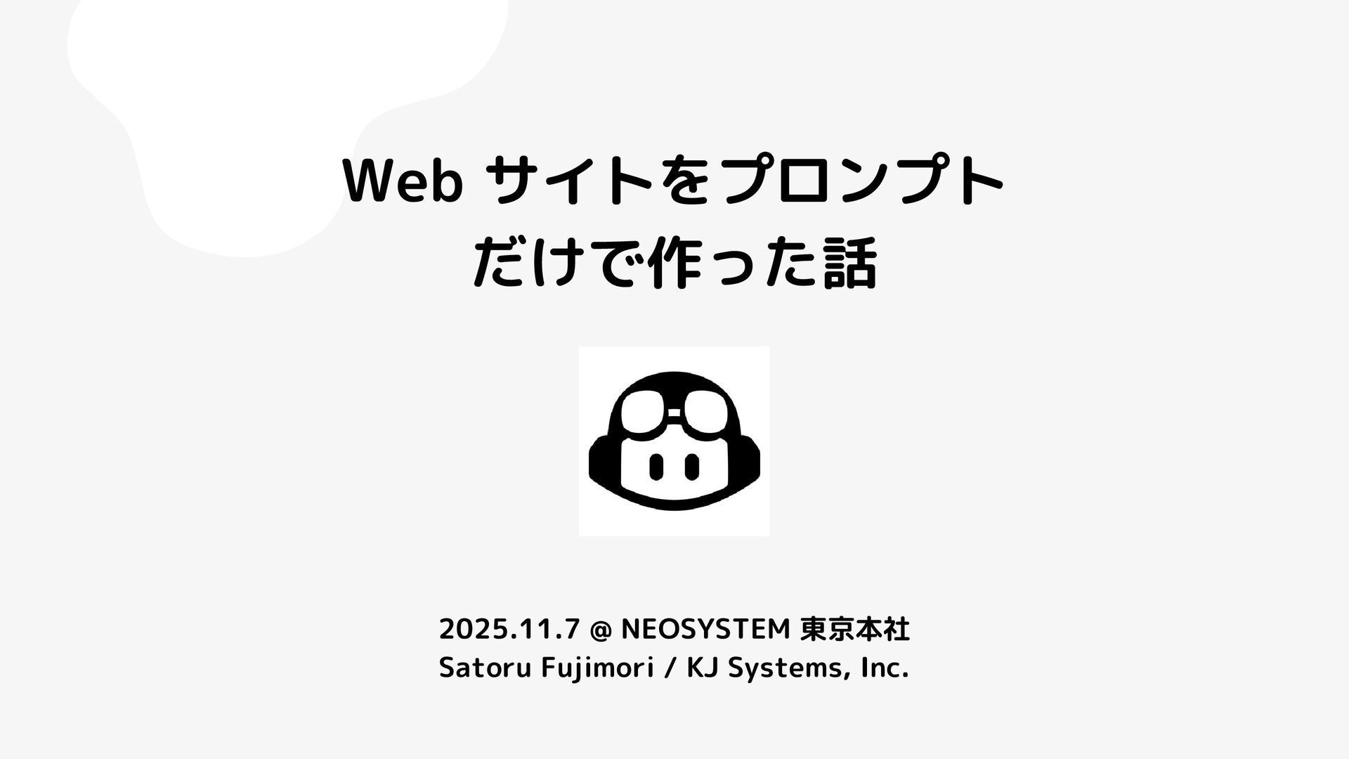 Web サイトをプロンプト だけで作った話 2025.11.7 @ NEOSYSTEM 東京本社 Satoru Fujimori /