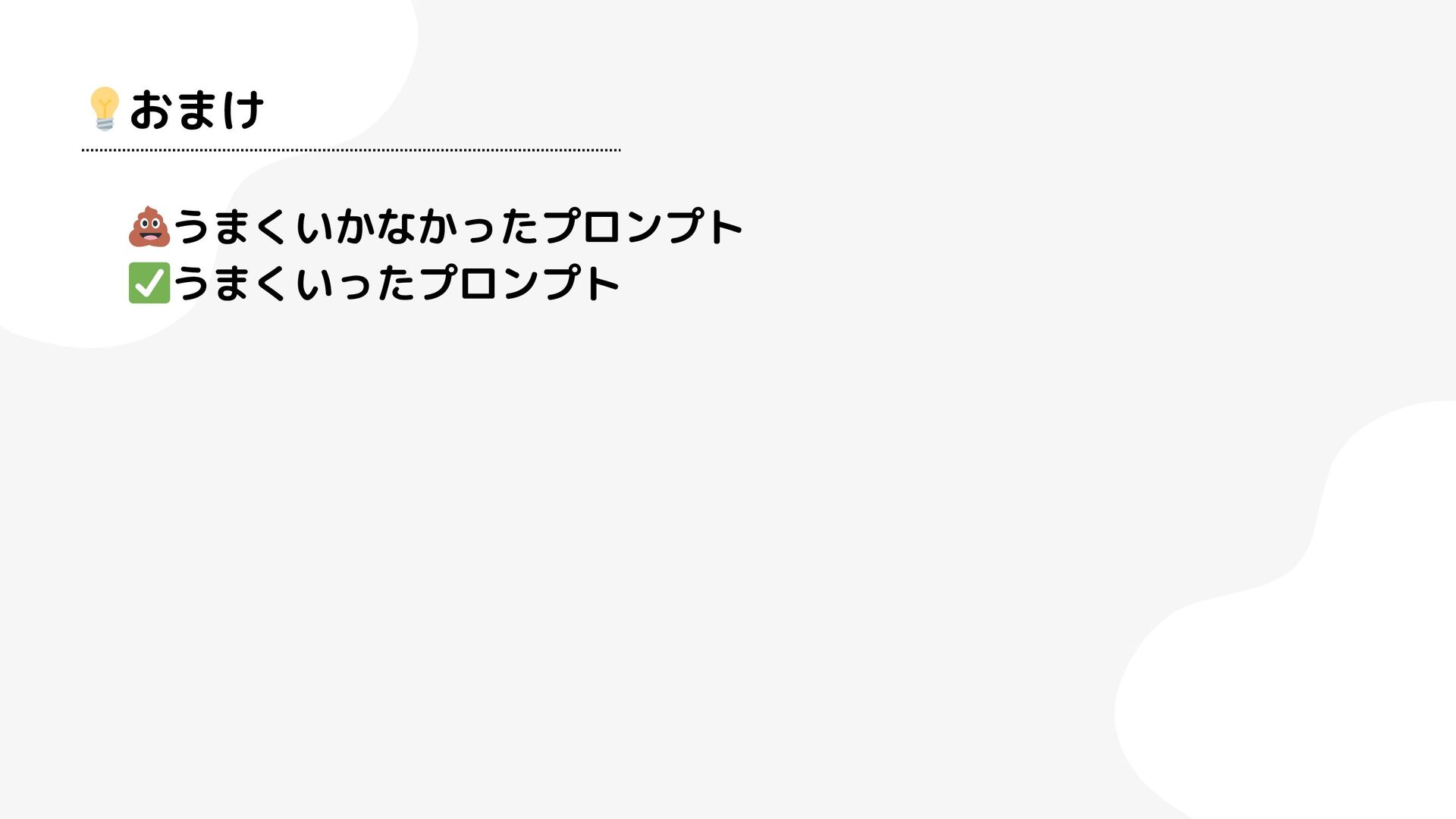 💡おまけ 💩うまくいかなかったプロンプト ✅うまくいったプロンプト