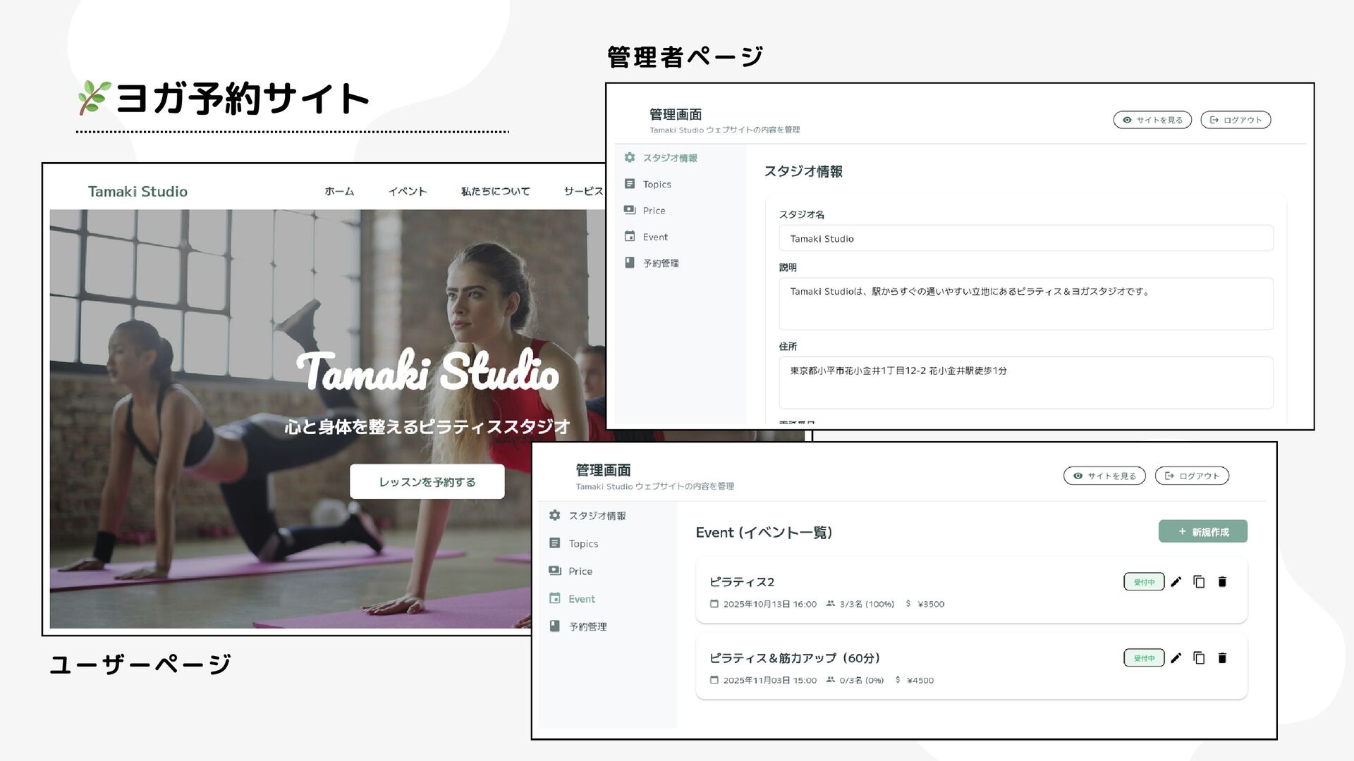 🌿ヨガ予約サイト ユーザーページ 管理者ページ