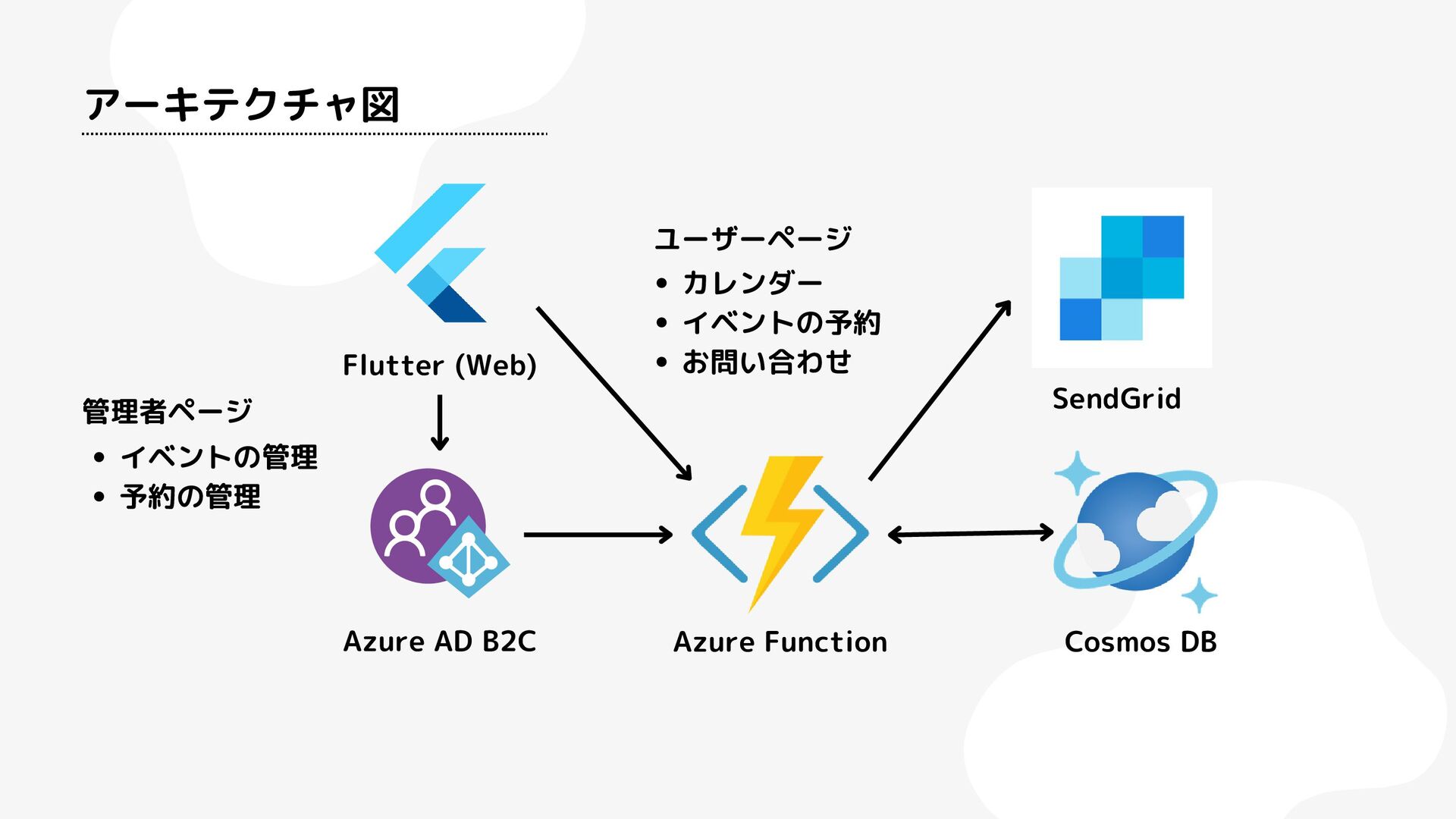 Azure Function Azure AD B2C アーキテクチャ図 SendGrid Flutter (Web) 管理者ページ