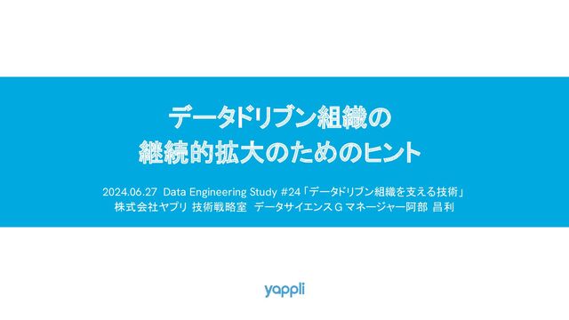 2022.12.09 データドリブン組織の 継続的拡大のためのヒント 2024.06.27 Data Engineering Study #24 「データドリブン組織を支える技術」 株式会社ヤプリ