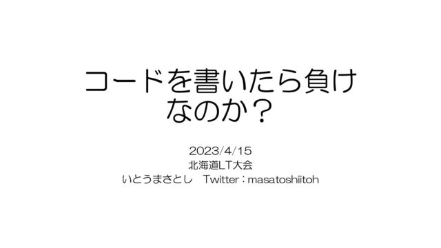 コードを書いたら負け なのか? 2023/4/15 北海道LT大会 いとうまさとし Twitter : masatoshiitoh