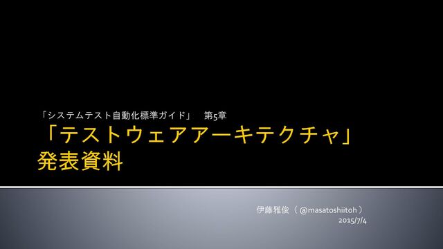 「システムテスト自動化標準ガイド」 第5章 伊藤雅俊( @masatoshiitoh ) 2015/7/4