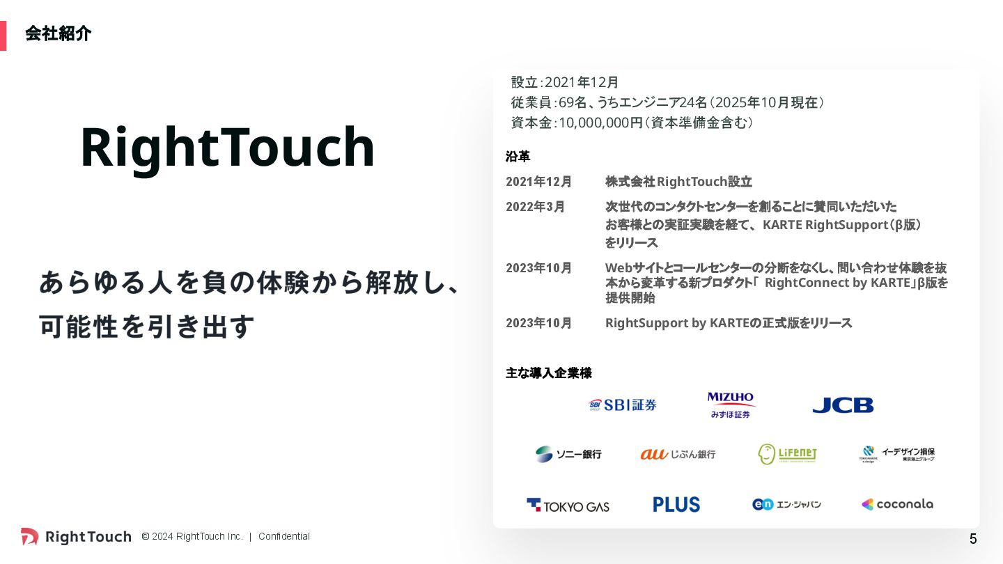 をリリース 2023年10月 Webサイトとコールセンターの分断をなくし、問い合わせ体験を抜 本から変革する新プロダクト「 RightConnect by KARTE」β版を 提供開始