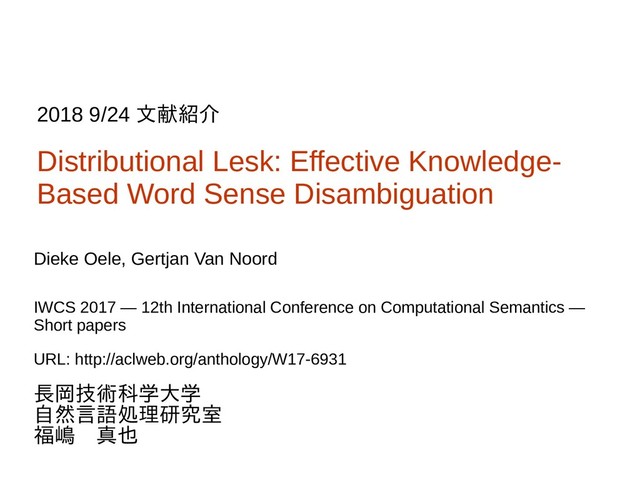Gertjan Van Noord 2018 9/24 文献紹介 長岡技術科学大学 自然言語処理研究室 福嶋 真也 IWCS 2017 — 12th International Conference on Computational Semantics — Short papers URL: http://aclweb.org/anthology/W17-6931