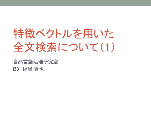 特徴ベクトルを用いた 全文検索について(1) 自然言語処理研究室 B3 福嶋 真也