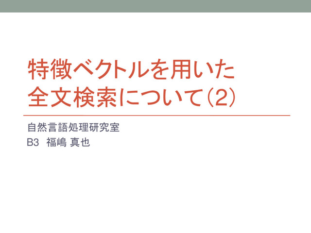 1. 特徴ベクトルによる検索 例:key=“search AND algorithm” 1 =full text search 2 =inverted