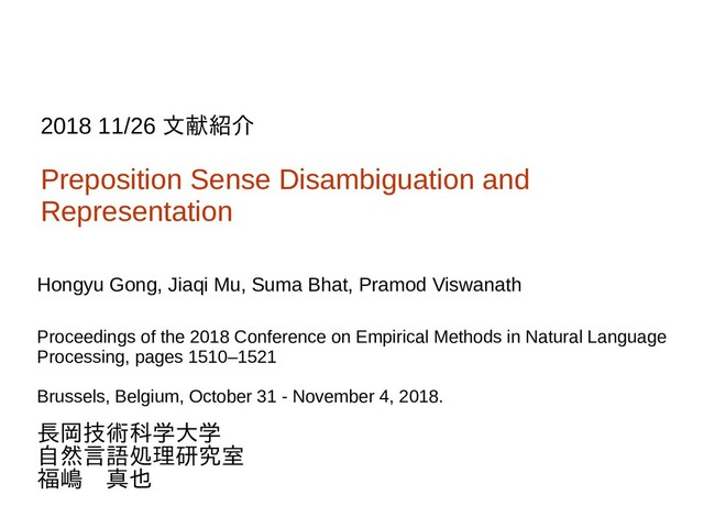 Bhat, Pramod Viswanath 2018 11/26 文献紹介 長岡技術科学大学 自然言語処理研究室 福嶋 真也 Proceedings of the 2018 Conference on Empirical Methods in Natural Language Processing, pages 1510–1521 Brussels, Belgium, October 31 - November 4, 2018.