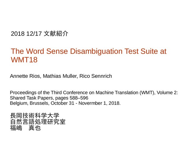 Mathias Muller, Rico Sennrich 2018 12/17 文献紹介 長岡技術科学大学 自然言語処理研究室 福嶋 真也 Proceedings of the Third Conference on Machine Translation (WMT), Volume 2: Shared Task Papers, pages 588–596 Belgium, Brussels, October 31 - Novermber 1, 2018.