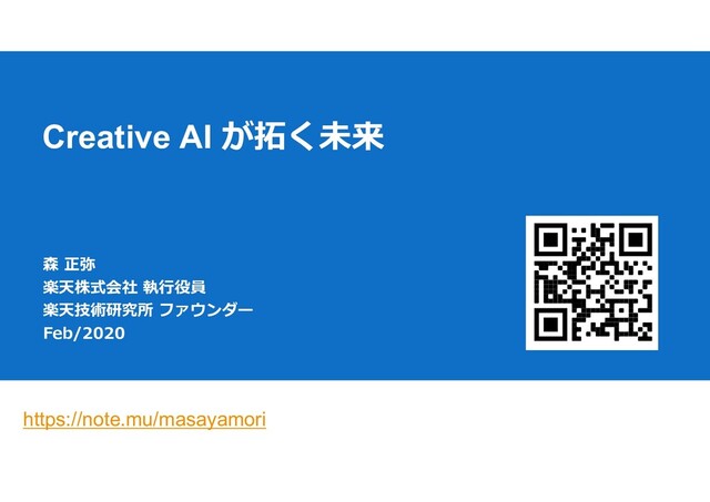 本資料はそのCreative AI および GANの基本的な事例紹介をしたものです。