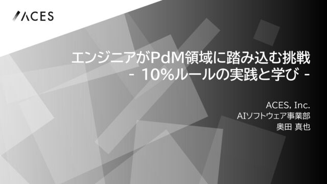 エンジニアがPdM領域に踏み込む挑戦 - 10%ルールの実践と学び - ACES, Inc. AIソフトウェア事業部 奥田 真也