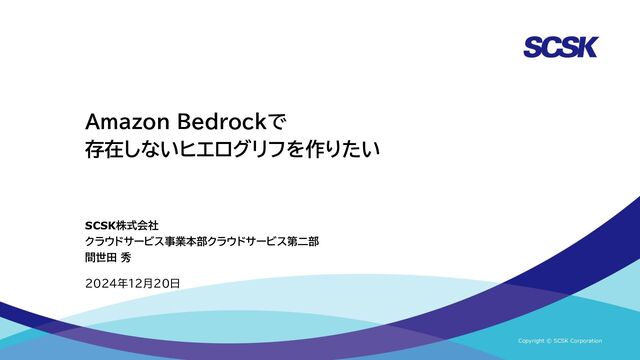 Copyright © SCSK Corporation Amazon Bedrockで 存在しないヒエログリフを作りたい SCSK株式会社 クラウドサービス事業本部クラウドサービス第二部 間世田