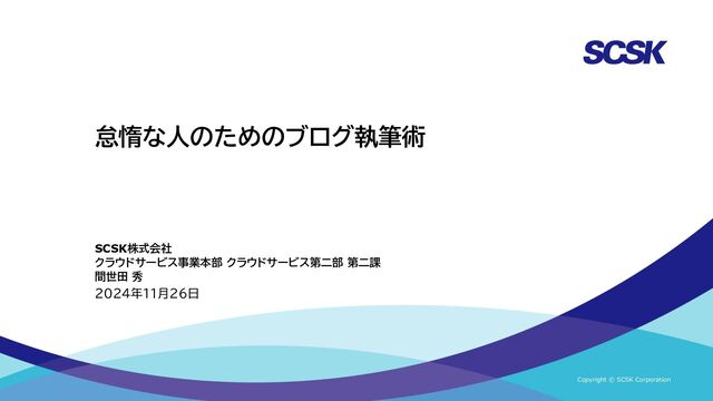 Copyright © SCSK Corporation 怠惰な人のためのブログ執筆術 SCSK株式会社 クラウドサービス事業本部 クラウドサービス第二部 第二課 間世田