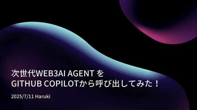 次世代WEB3AI AGENT を GITHUB COPILOTから呼び出してみた! 2025/7/11 Haruki