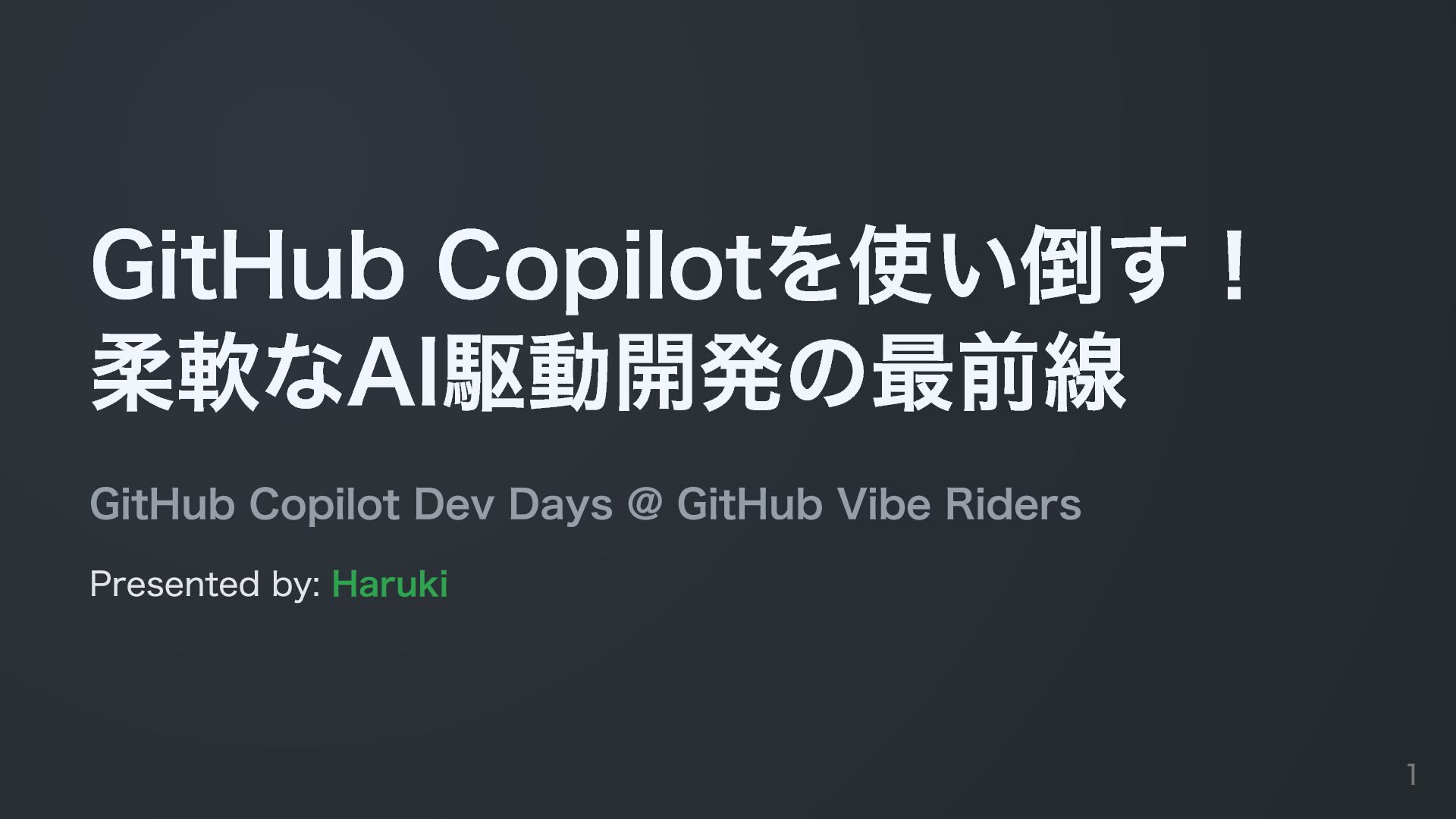 2026年3月20日に開始されたGitHub Copilot Dev Days Tokyo - GitHub Vibe Ridersの登壇資料です!