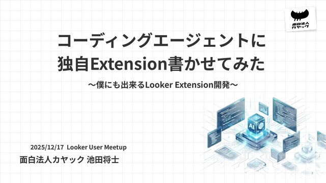 コーディングエージェントに 独⾃Extension書かせてみた 〜僕にも出来るLooker Extension開発〜 2025/12/17 Looker User Meetup ⾯⽩法⼈カヤック 池⽥将⼠