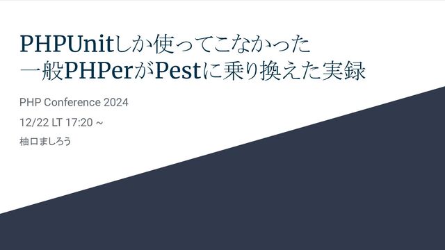 PHPUnitしか使ってこなかった 一般PHPerがPestに乗り換えた実録 PHP Conference 2024 12/22 LT 17:20 ~ 柚口ましろう