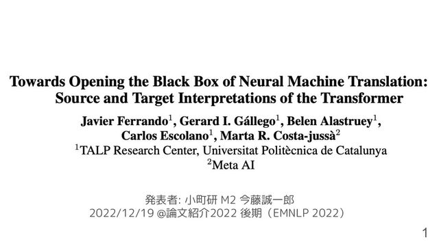 in Neural Machine Translation [Voita et al., ACL 2021] 🔗 ◦ Layer-wise Relevance Propagation (LRP) を用いた分析 ◦ 文長を揃えたコーパス単位でしか分析ができない → 本研究では文単位でも分析できる手法 • Measuring the Mixing of Contextual Information in the Transformer [Ferrando et al., EMNLP 2022] 🔗 ◦ ALTI (Aggregation of Layer-wise Tokens Attributions) を用いてBERT や RoBERTa を分析 ◦ 本研究はこの手法を Seq2Seq Transformer モデルに拡張(ALTI+) 3