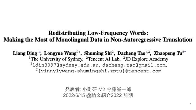 linkの分析 → src → tgt のアライメントは一意に近づく一方で tgt → src のアライメントが少なくなることを実証 → アライメントの質を測る指標 • 手法(学習データを分割している?) 1. fastalignで単語アライメントを作成し、 src側が低頻出語なものを抽出(辞書) 2. (元データから対訳文をサンプリングしてサブセットを作成(辞書の作成に利用しない?)) 3. 辞書の単語アライメントに関して 2のデータを用いて次の指標で評価 ▪ Recall : 低頻度語のうちどれだけ辞書に基づいたアライメントが張られているか ▪ Precision : 辞書の中のアライメントがどれだけ正しいか(人手評価) ▪ F1 : PrecisionとRecallの調和平均 7