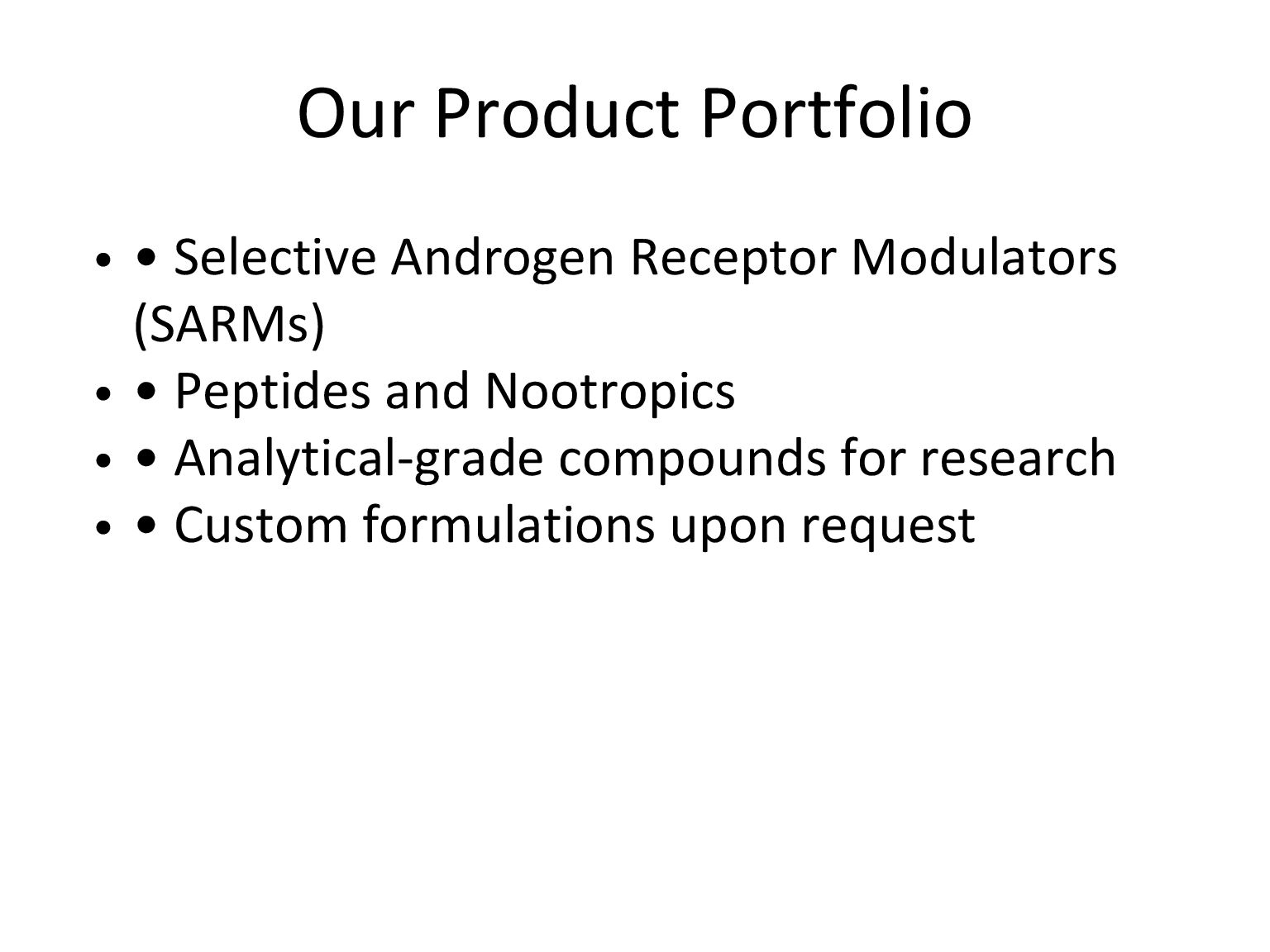 in high-purity SARMs, peptides, and nootropics. We provide compounds exclusively for laboratory and analytical use, ensuring every product meets the highest standards of scientific integrity.