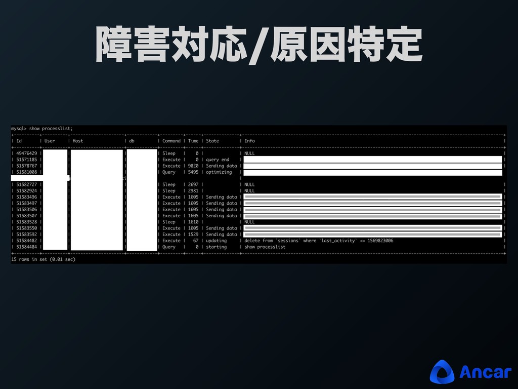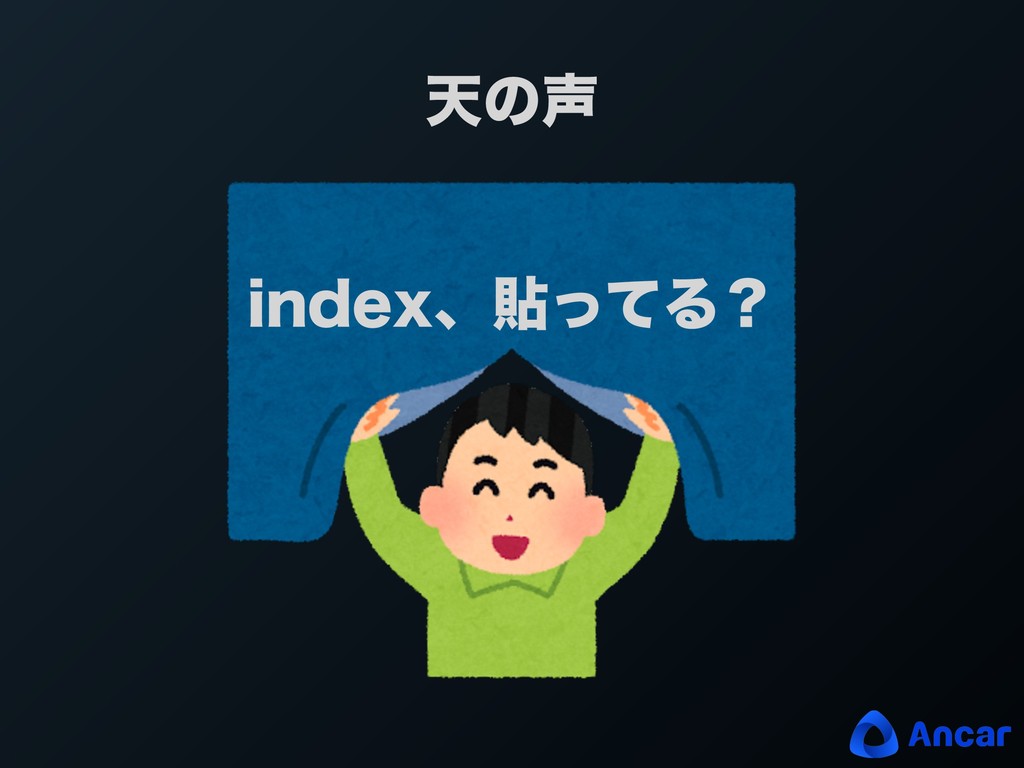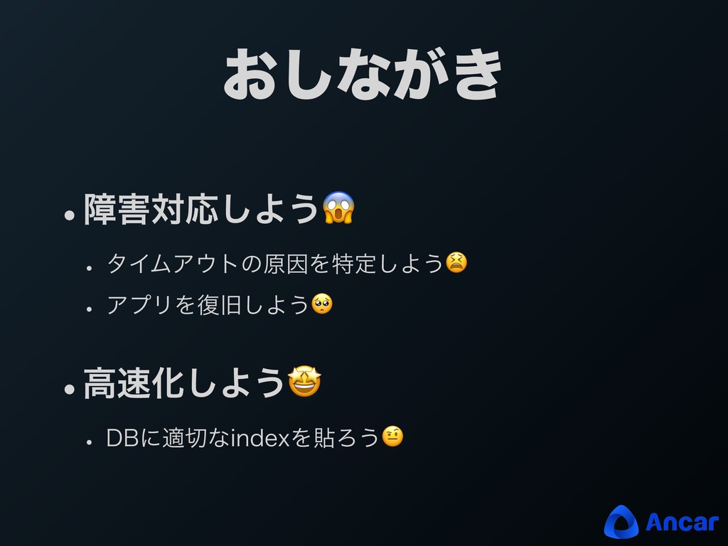 ͓͠ͳ͕͖ wোରԠ͠Α͏ w λΠϜΞτͷݪҼΛಛఆ͠Α͏ w ΞϓϦΛ෮چ͠Α͏ wߴԽ͠Α͏ w %#ʹదͳJOEFYΛషΖ͏
