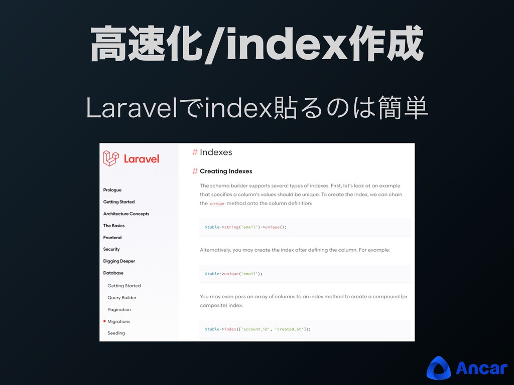 ߴԽJOEFY࡞ -BSBWFMͰJOEFYషΔͷ؆୯