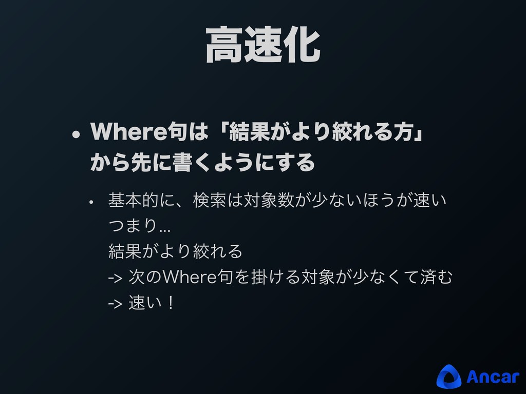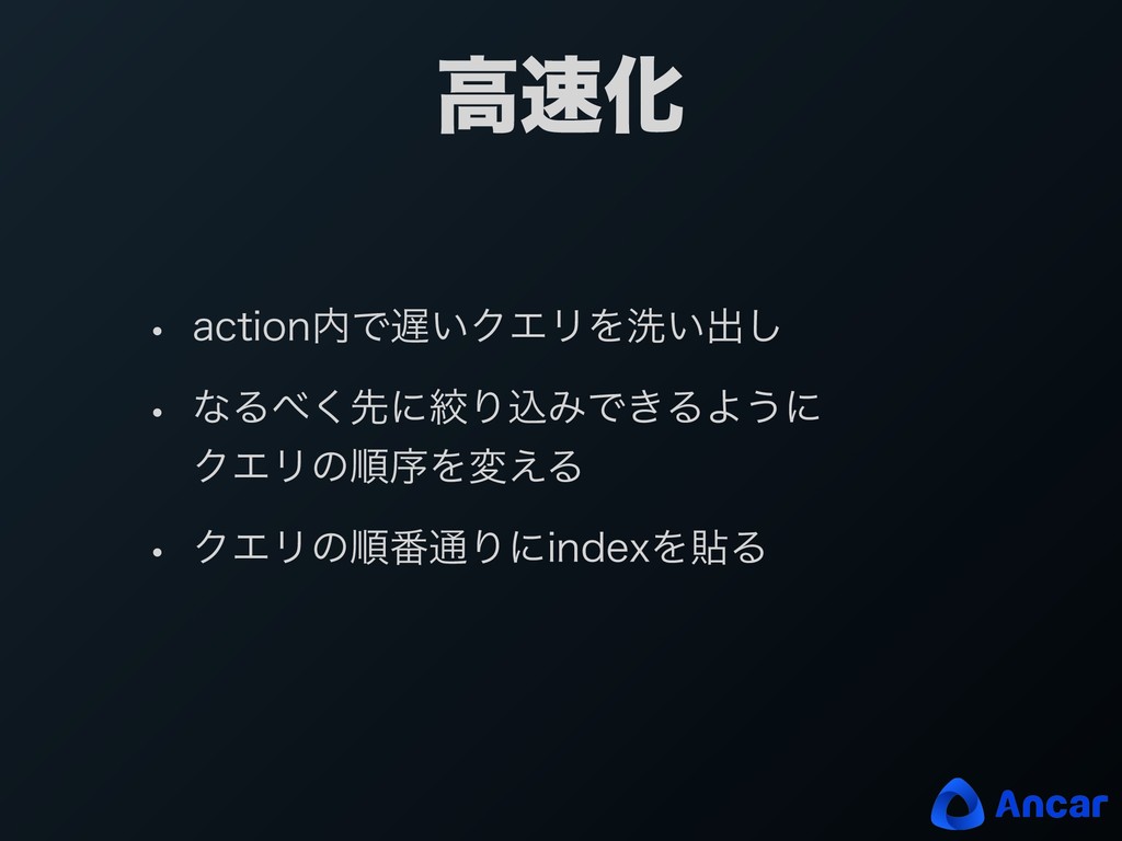 ߴԽ w BDUJPOͰ͍ΫΤϦΛચ͍ग़͠ w ͳΔ͘ઌʹߜΓࠐΈͰ͖ΔΑ͏ʹ ΫΤϦͷॱংΛม͑Δ w ΫΤϦͷॱ൪௨ΓʹJOEFYΛషΔ