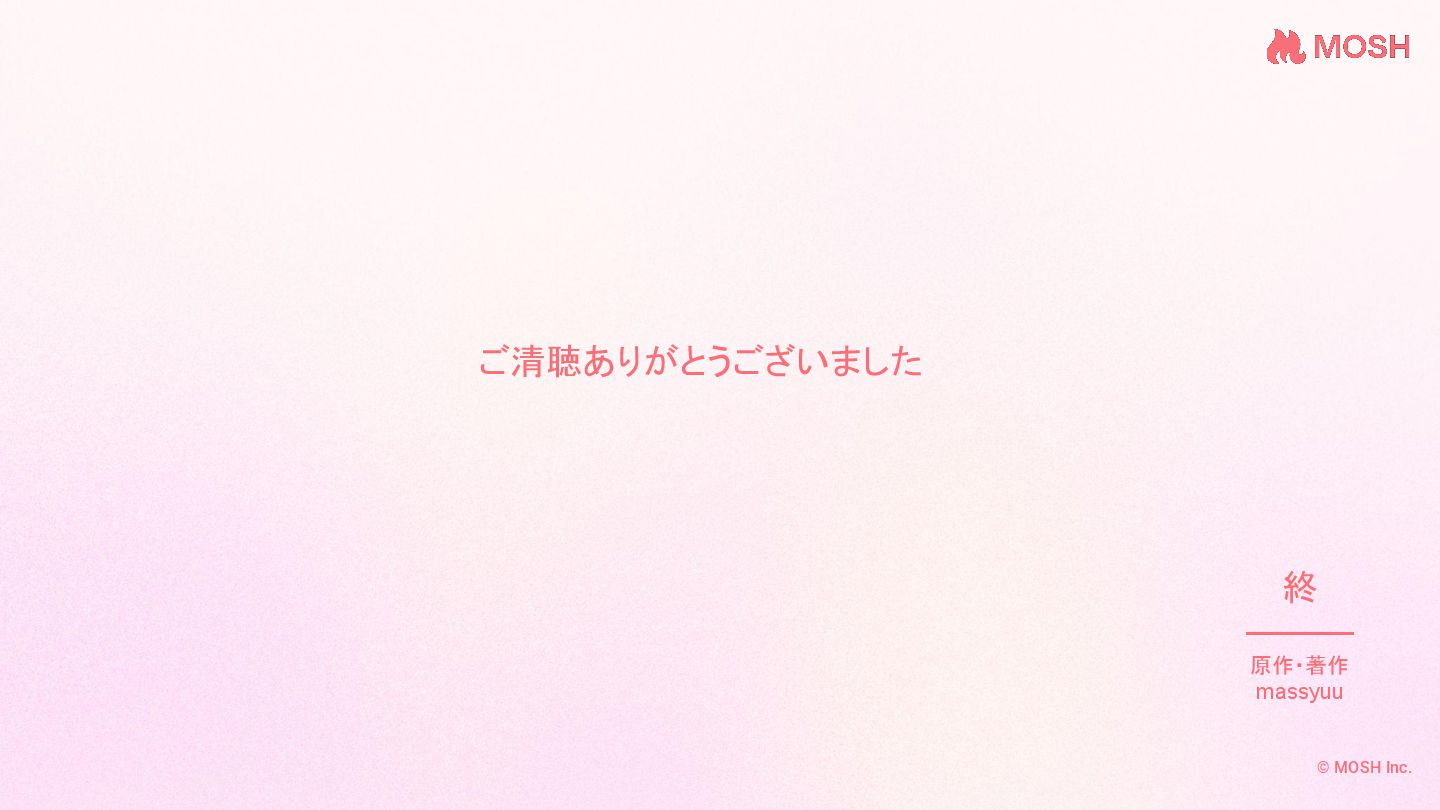 ご清聴ありがとうございました © MOSH Inc. 終 ——— 原作・著作 massyuu