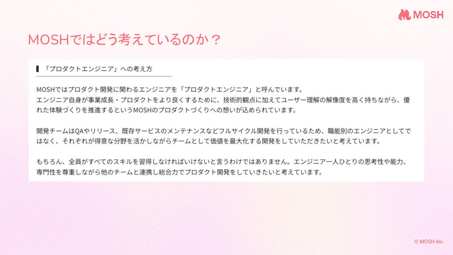 MOSHにおけるプロダクトエンジニア © MOSH Inc.