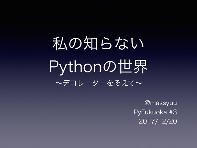 ࢲͷΒͳ͍ 1ZUIPOͷੈք !NBTTZVV 1Z'VLVPLB ʙσίϨʔλʔΛͦ͑ͯʙ