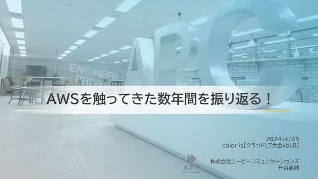 AWSを触ってきた数年間を振り返る! 2024/4/25 color is【クラウドLT大会vol.8】 株式会社エーピーコミュニケーションズ 升谷直緒