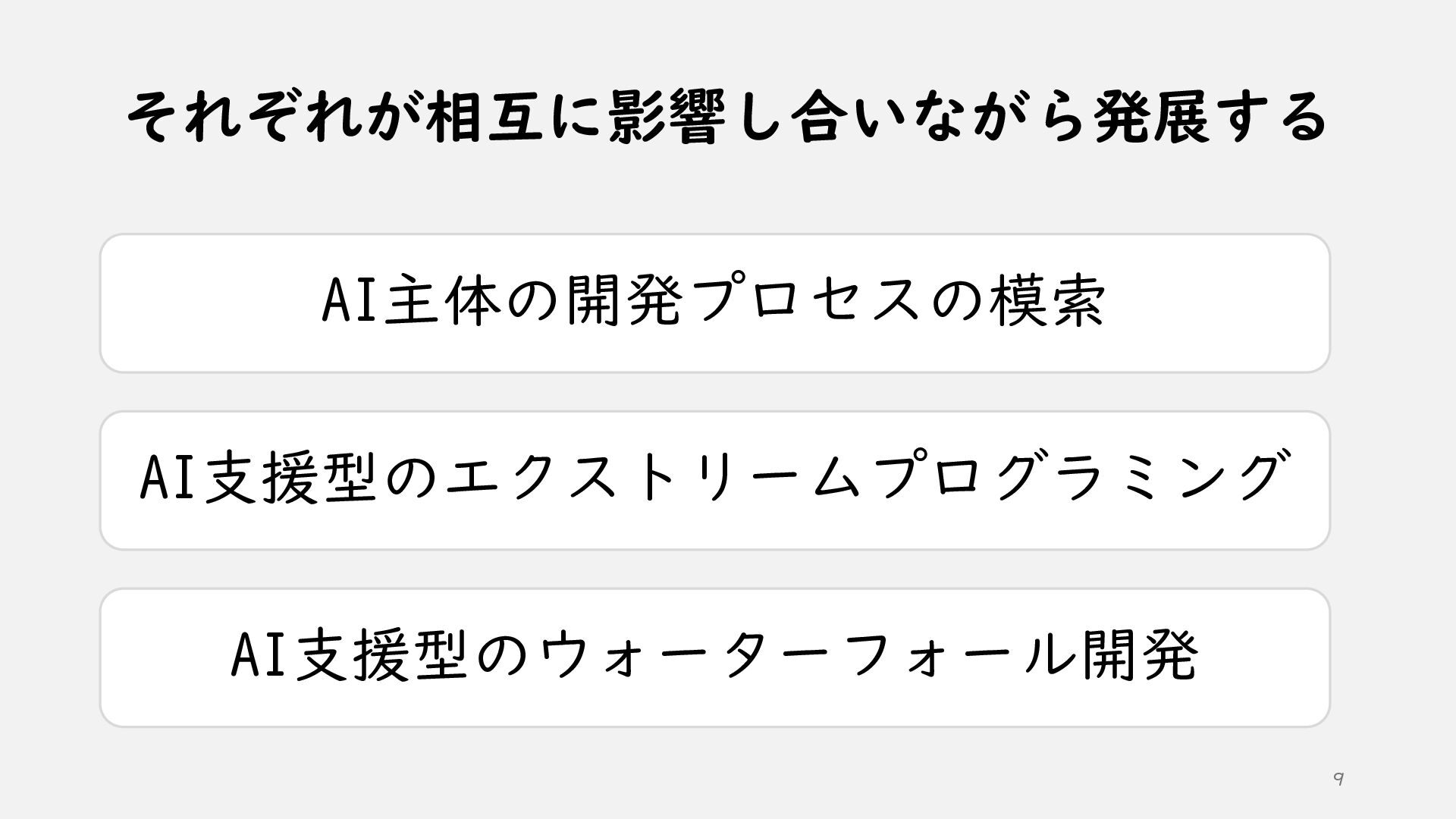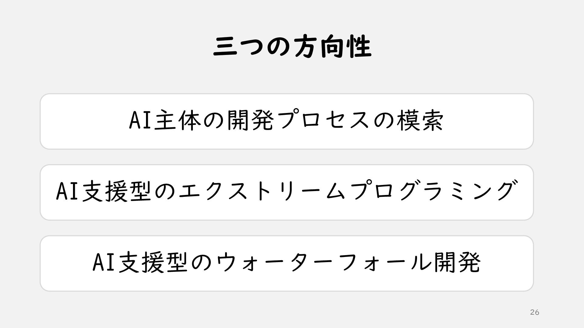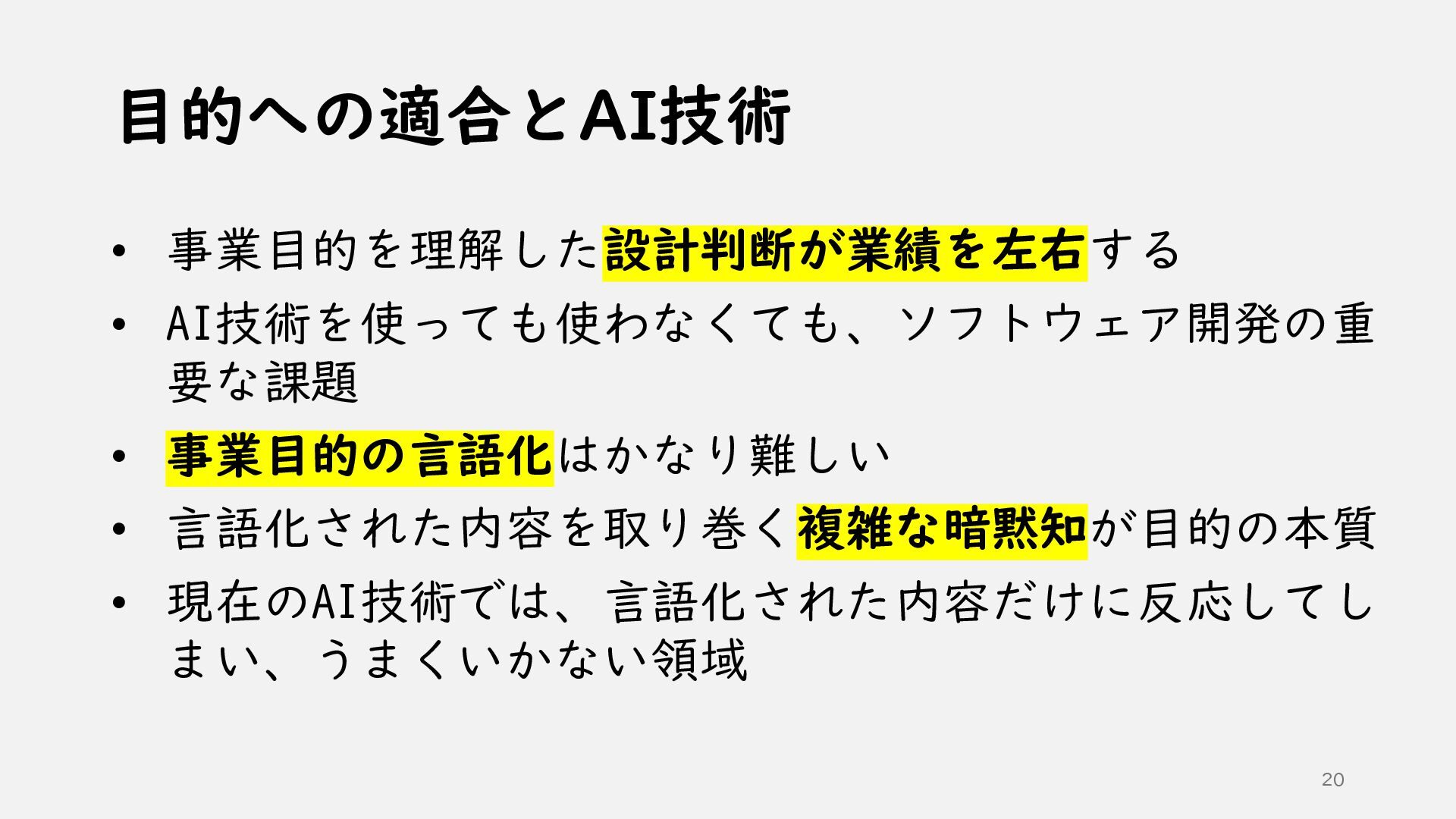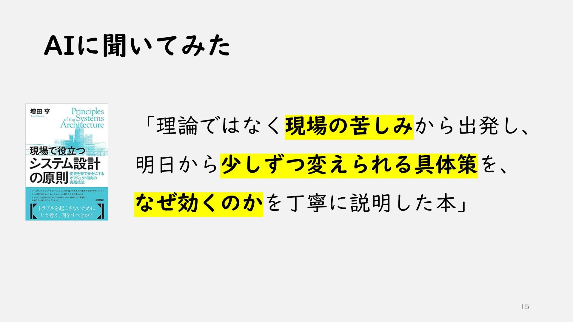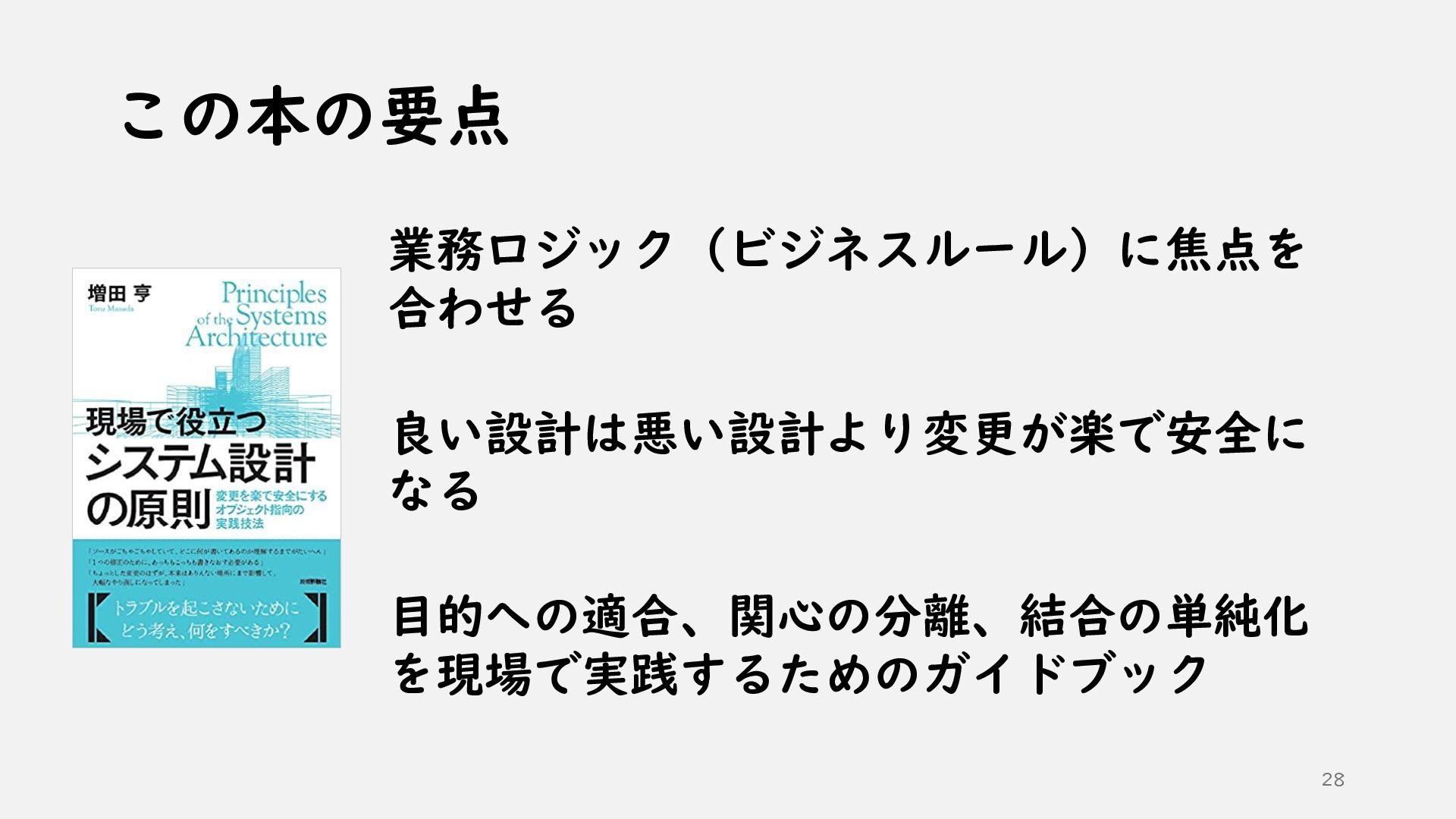 ①AI時代のソフトウェア開発 ②AI技術の活かし方 ③ソフトウェア設計の根底技法と実践技法 ④どうわけるか? 関心の分離 ⑤どうつなぐか? 結合の単純化 ⑥どう整えるか? 目的への適合