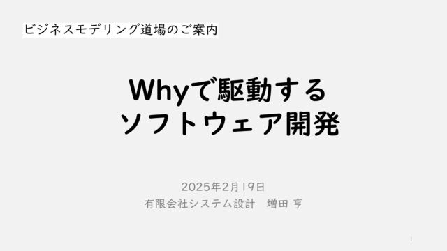 - 複雑になるソフトウェア開発、事業活動との一体化 - 予測しづらい状況で事業視点で設計する - 競争優位分析とソフトウェア設計を整合させる - 事業視点の設計判断に習熟する - 継続的な探索と発見(観察・仮説・行動)