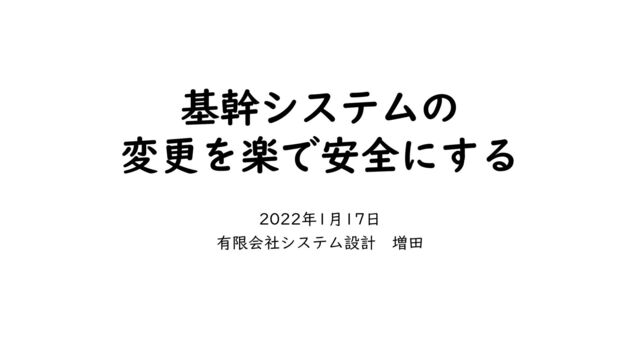 基幹システムの 変更を楽で安全にする 2022年1月17日 有限会社システム設計 増田