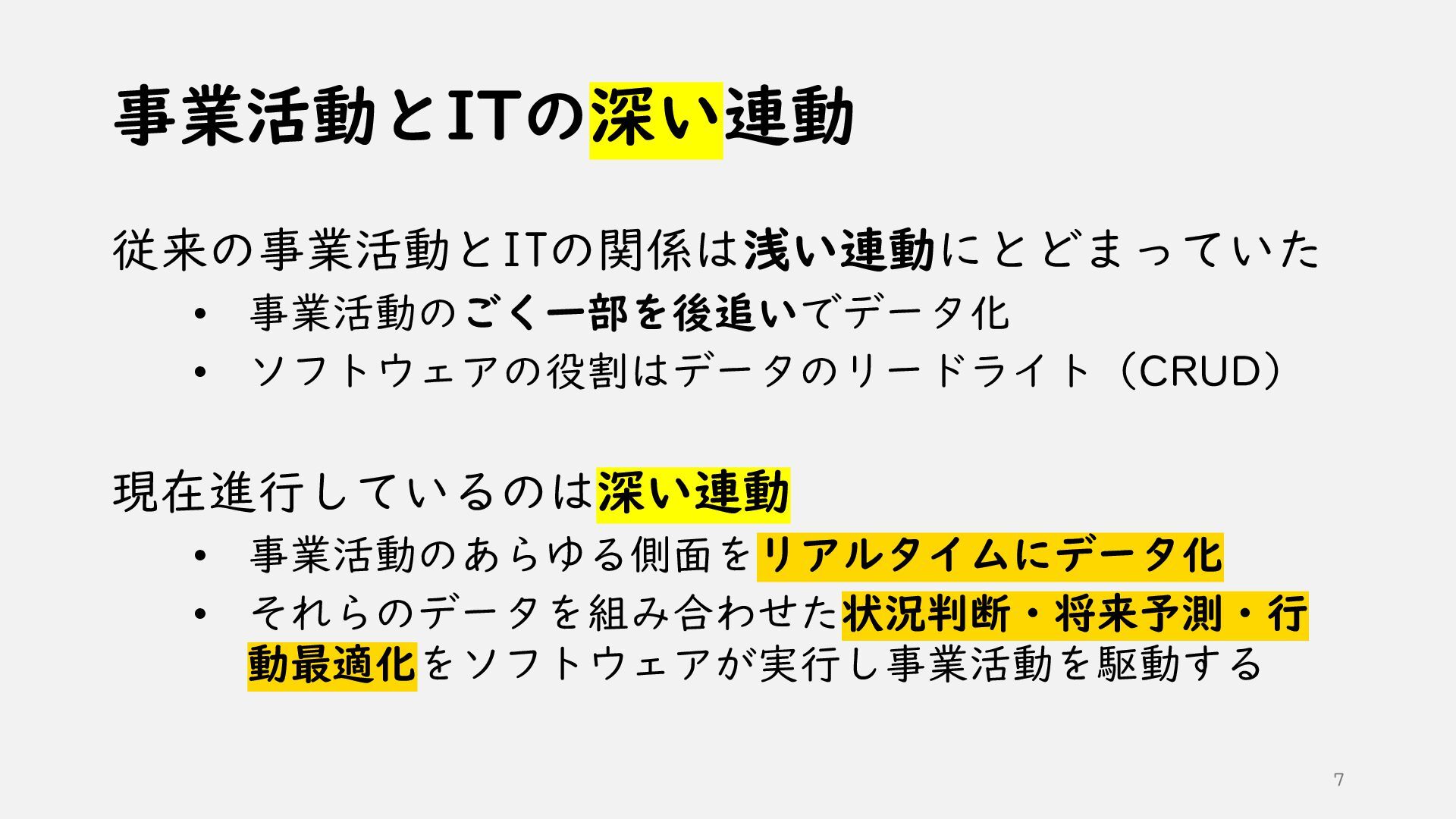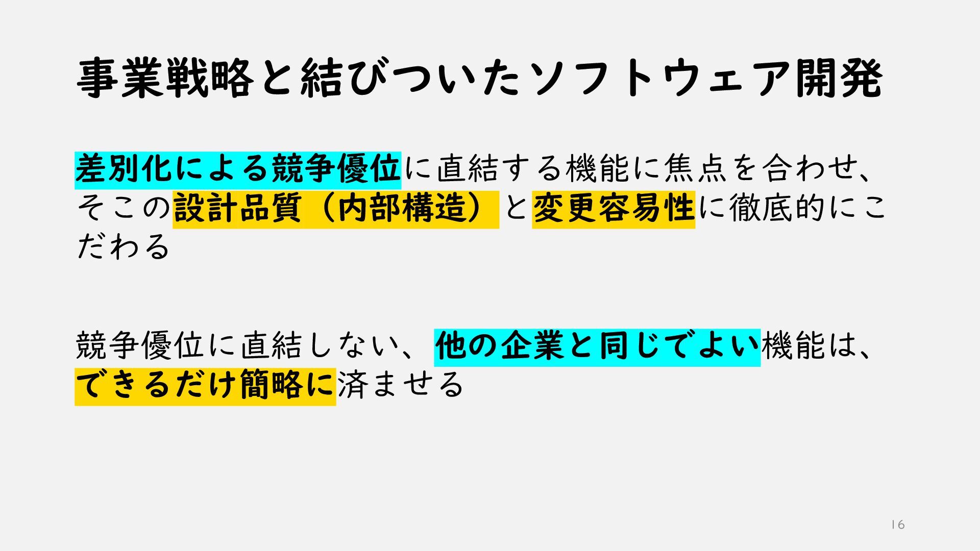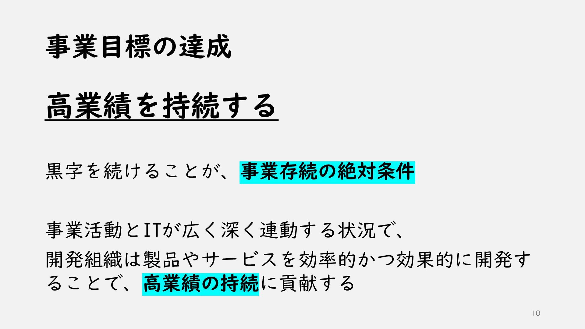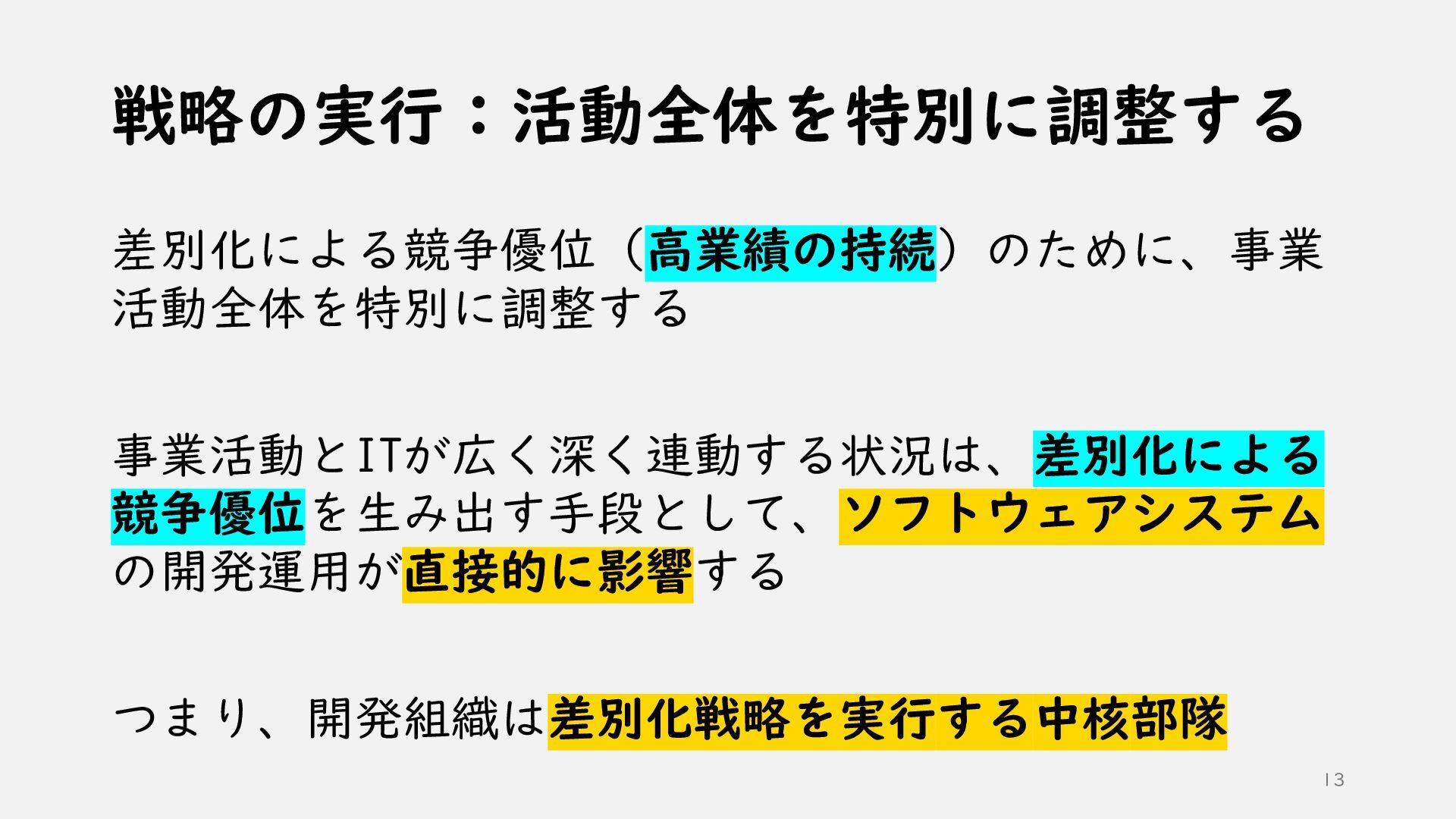 ①事業活動におけるITの位置づけの変化 ②開発組織の戦略的な役割 ③事業戦略とソフトウェア開発を結びつける ④開発組織の設計スキル向上による事業貢献