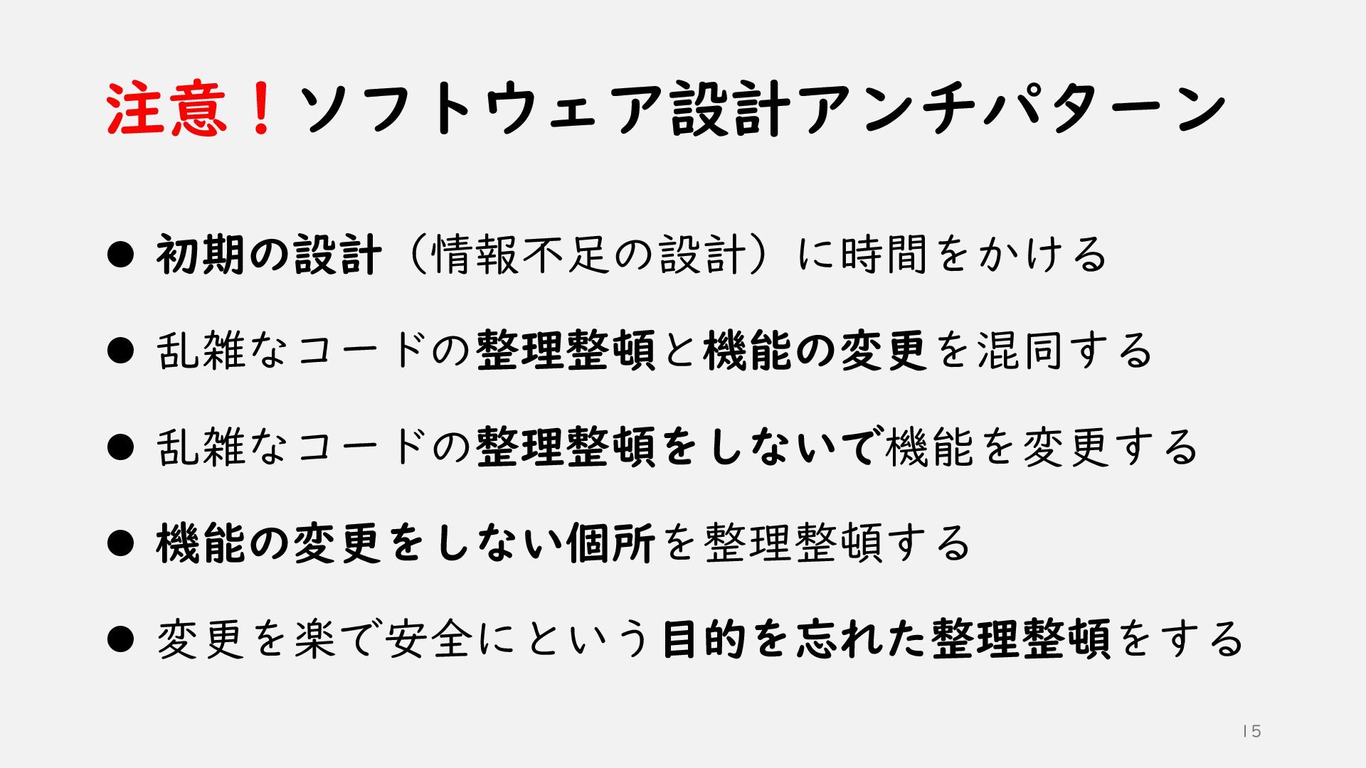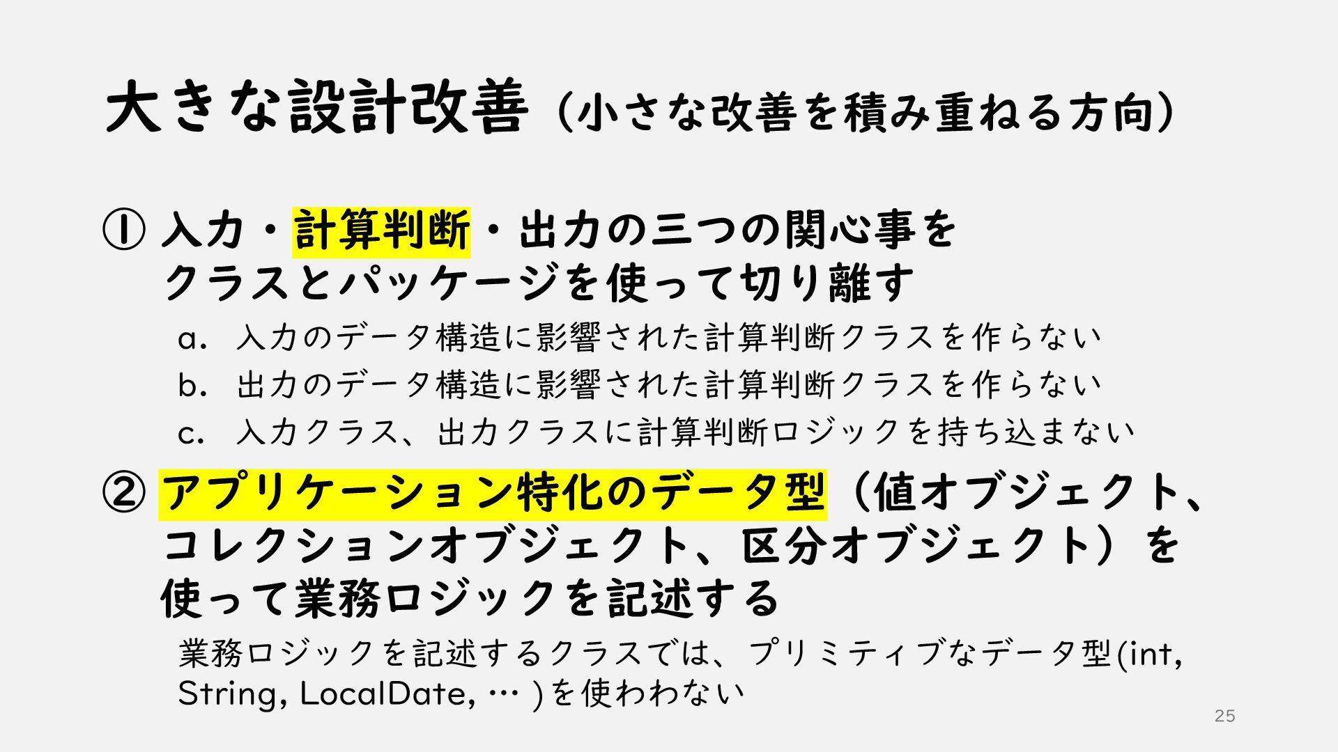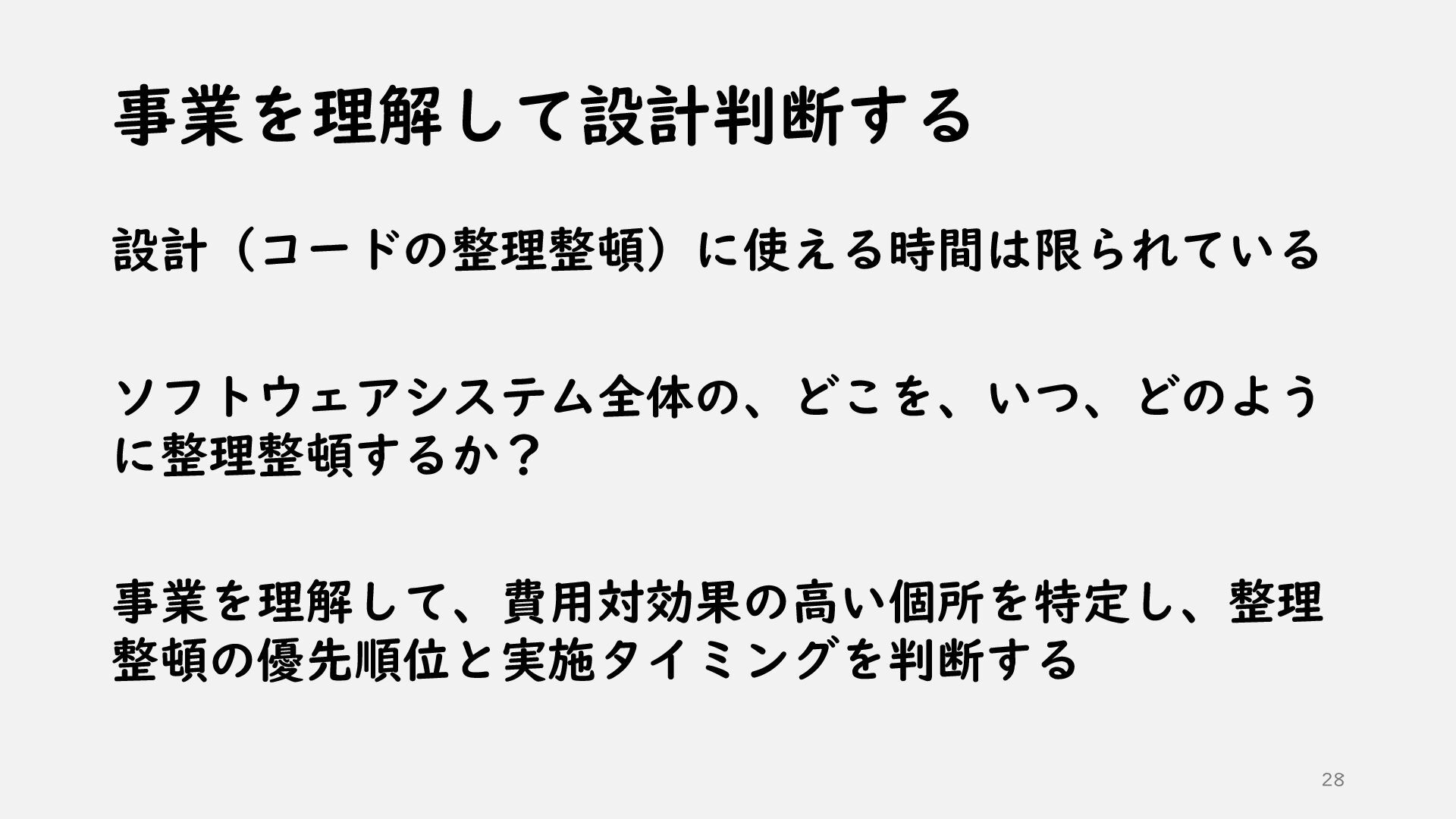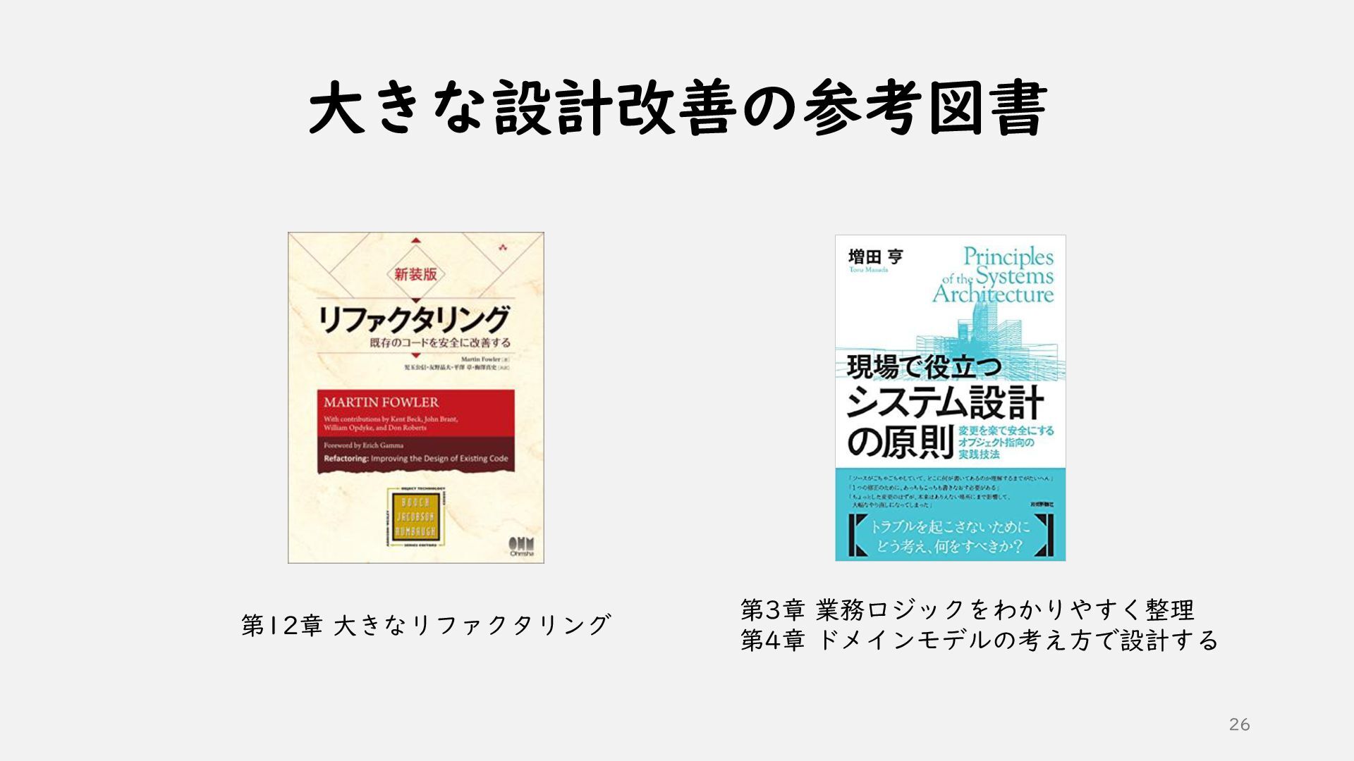 1. 良い設計とはなにか 2. 設計スキルを身に付けるコツ 3. 乱雑なコードを整理する実践技法 - 小さな設計改善 - 大きな設計改善 - 戦略的な設計改善