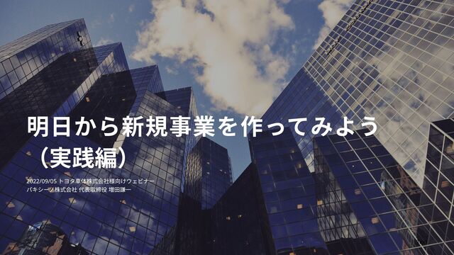 Text Text 明日から新規事業を作ってみよう (実践編) 2022/09/05 トヨタ車体株式会社様向けウェビナー パキシーノ株式会社 代表取締役 増田謙一